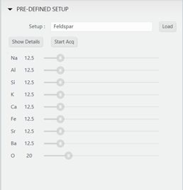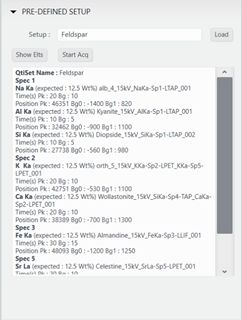 If the quantitative analysis setup is already known, it can be loaded directly with the Load button. The parameters of the acquisition can be viewed by pressing the ‘View Elts’ (elements) or ‘Show Details’ buttons.