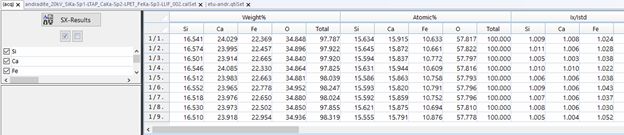 If a quantitative analysis protocol does not exist, it is possible to create one without any previous knowledge of the sample composition. The first step is to acquire WDS or EDS X-ray spectra. After the spectra are acquired, automatic element ID creates an element list with an estimated element concentration. From this information, the Expert System creates a quantitative analysis protocol. If the Calibration Method is set to ‘Geology’, oxygen is also added to the list of elements and its concentration will be calculated by stoichiometry.