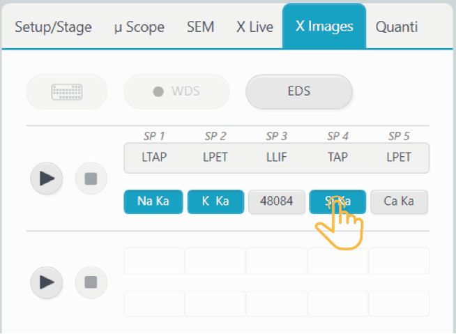 The upper portion of the X Images panel is used to select the elements for mapping with WDS and EDS.