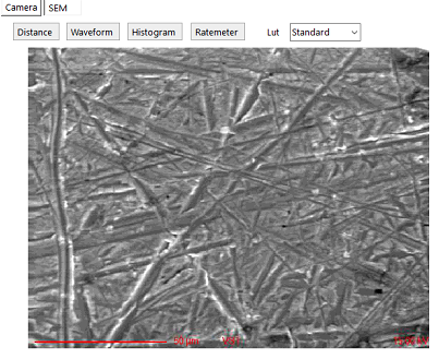 The Field of View (FOV) of an image can be changed by selecting the drop-down menu allowing a range from 250 µm up to 1750 µm. These values are a direct measurement of the image width on the screen.