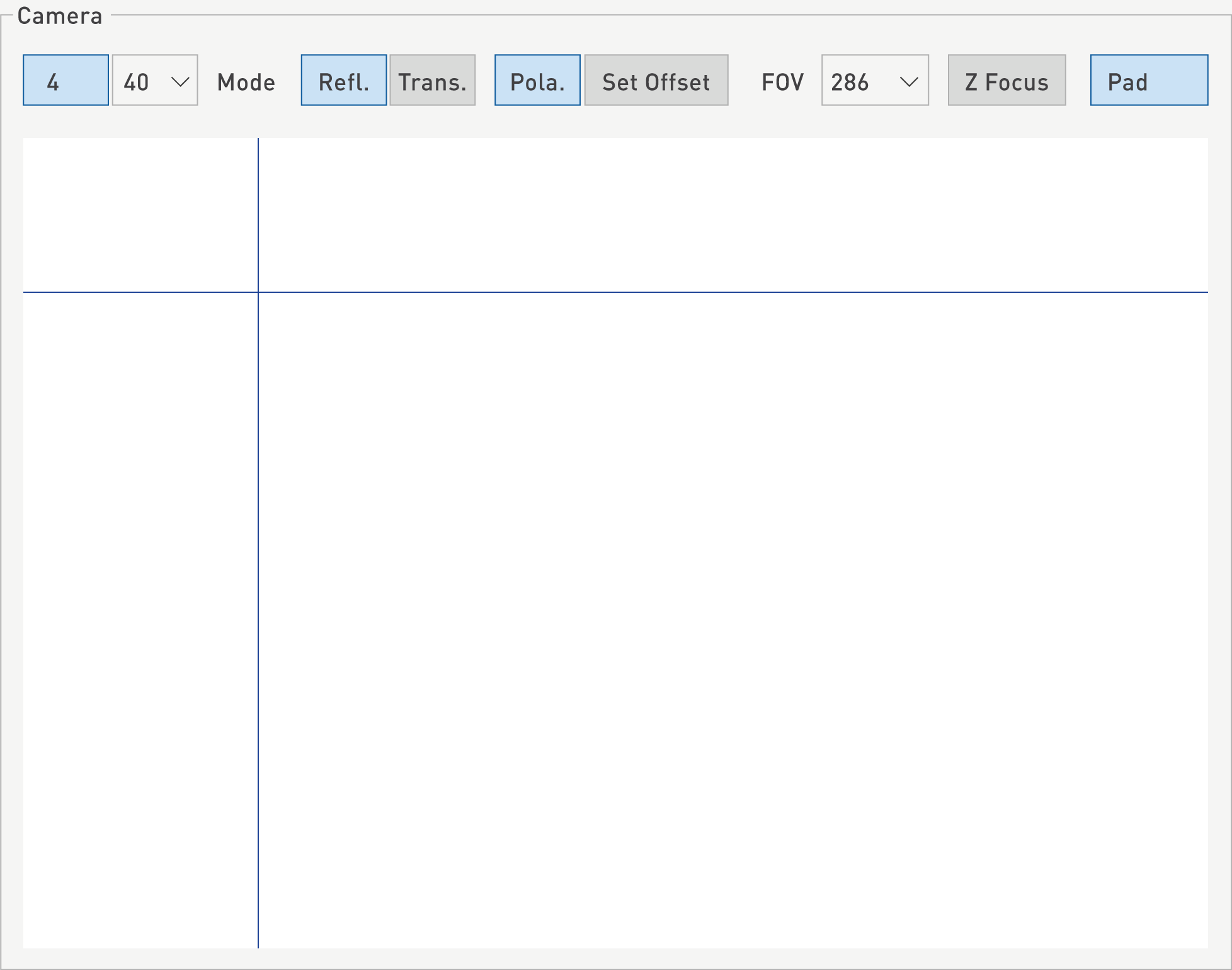 The optical microscope can be operated in Transmission or in Reflection mode, and switching from one mode to the other can be achieved by toggling the Refl. or the Tran. Buttons.