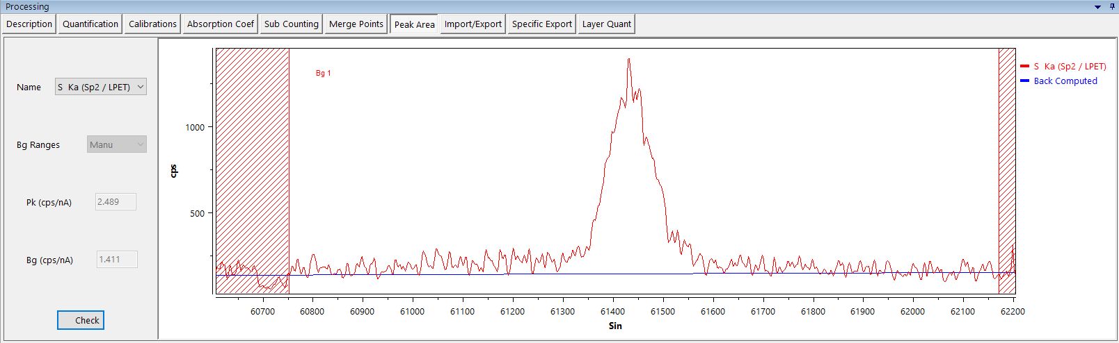 This process measures the peak area of a given dataset when the quantification uses the peak area method instead of the peak intensity. It runs exactly like the Calibration ‘Peak Area’ process.