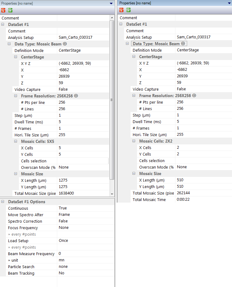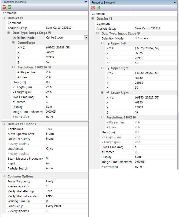 Note: the Stage Position records all three X, Y and Z coordinates but the beam positions, either at ‘Start’ or ‘End’, do not have the Z focus position recorded.