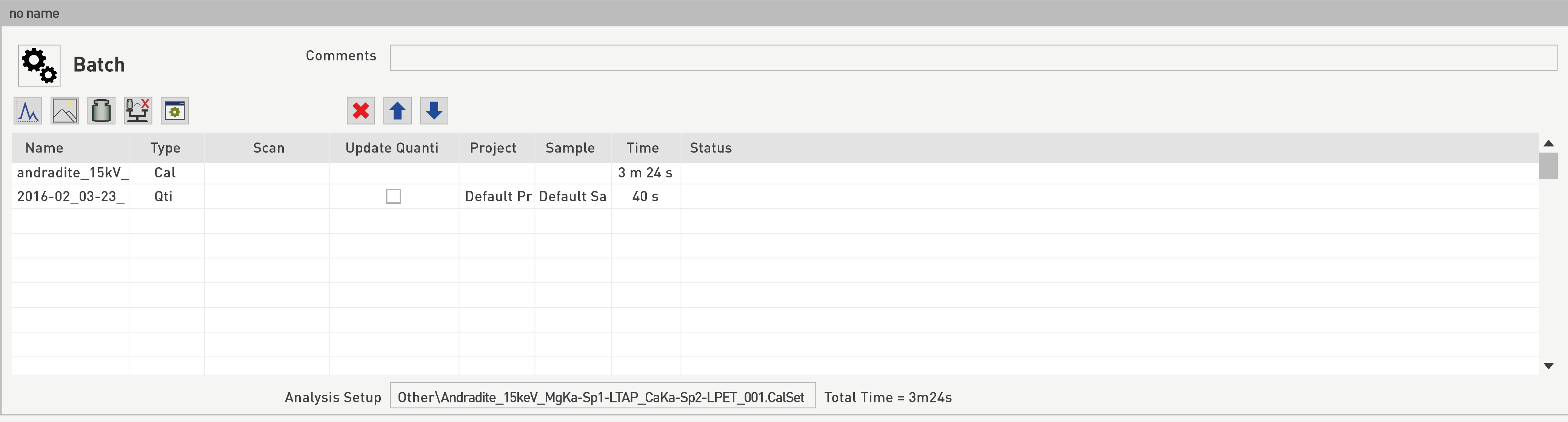 As opposed to the individual WDS, Images and Profiles, Calibrate and Quantify menus that would only accept files of the same kinds, the Batch panel allows any kind of panels to be bundled with others. Therefore, analysts could for instance decide to run all the four kinds of analysis, as long as the files contain the DAT extension obtained when preparing the Analysis files, as shown below.