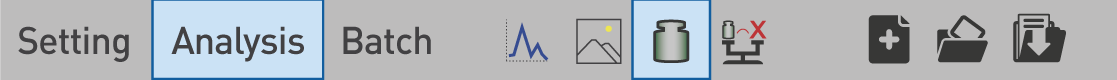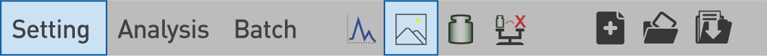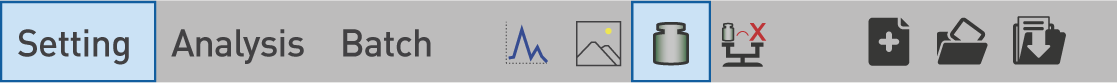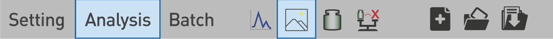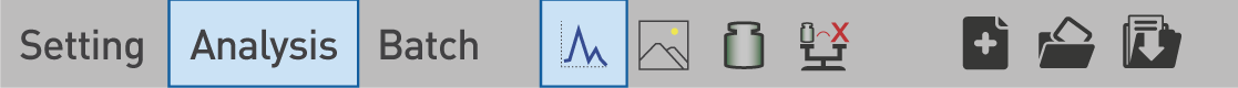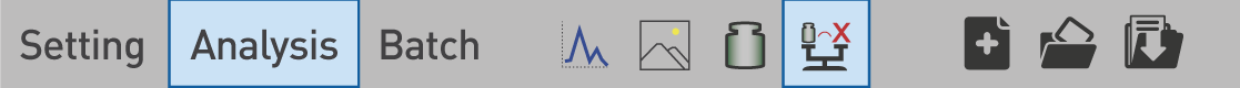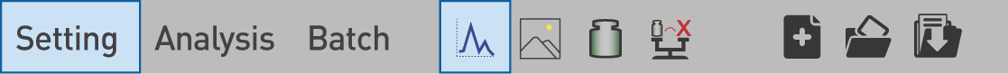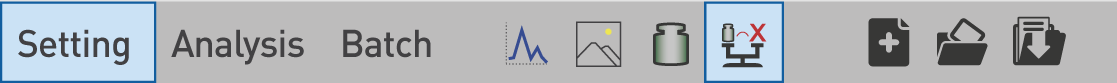 1. Select the desired task Settings, Analysis or Batch. The selected task is highlighted with a blue frame.