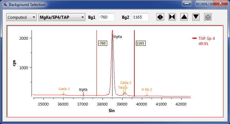 - The spectrum icon allows users to choose the background limits around a selected peak. Initial limits are given by default, and can be changed upon a WDS scan triggered by the ‘Acquire Now’ icon.