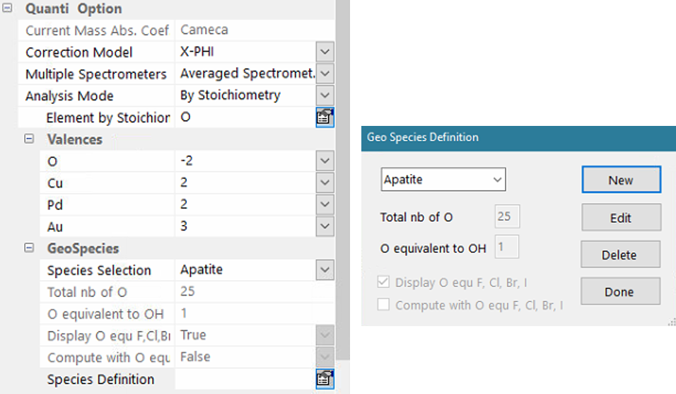 The user has to select the specie (Apatite, Axinit, Carbonate etc.) and he can do some modifications by clicking on “Edit”.