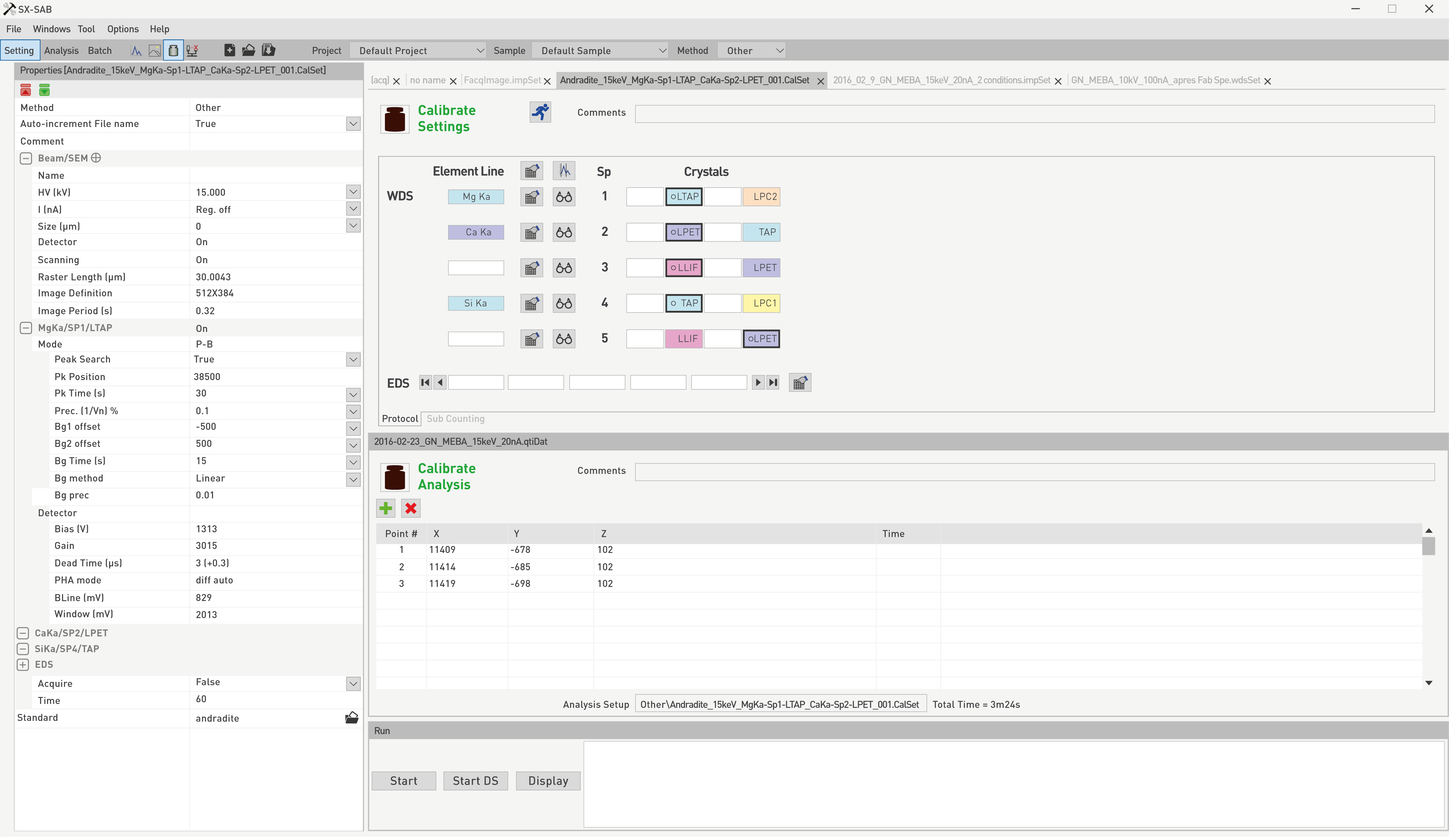 The first main function of the SX-SAB is the ability to create or modify all the hardware and software settings that will rule data acquisition. WDS Spectra, Images & Profiles, Calibrate and Quantification are described below. A tutorial section (link) is available to guide users on defining proper settings and options as applied to specific cases.